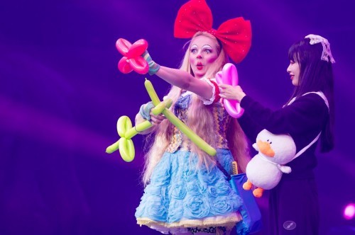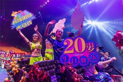 马戏演员与观众们一起庆祝长隆国际大马戏上演20周年
