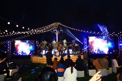 此次曹山未来城·夜赞露营地的舞台以“星空旅行生活季”为设计主题,灯光如梦如幻,制造了出层次丰富的奇幻植物部落的氛围。而因此美景和欢快的露营活动吸引了一批高颜值的KOL帅哥靓女们来到营地,把所见所感,美景美食与直播间的大家一起分享!