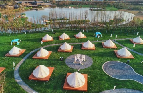 从城市走向山野幽谷,从帐篷走向梦幻仙踪,曹山未来城·夜赞露营地用时下最风靡的露营方式——酒店级帐篷,用潮流感十足的INS风、网红风配置了星星灯、夕阳灯等美学帐篷营地。在这里,你可以体验到“风吟鸟唱,满天星辰”的野趣,也可以有“咖啡在手,美食在前”的艺术营地经历。如果你感到困意袭来,何不躲进帐篷的小天地里,头枕大地,遥望滚烫星辰,等月亮和山野来主导你的梦。