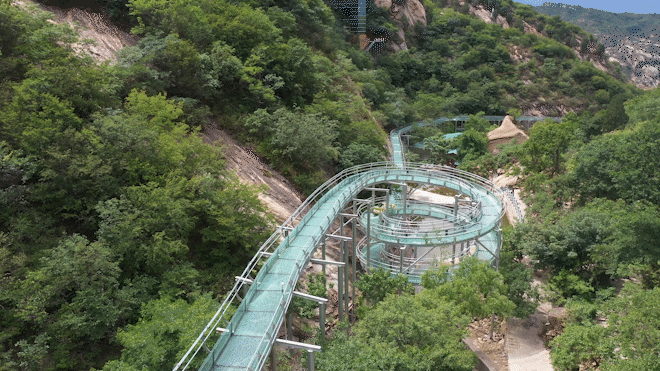 升级改造后的高空玻璃滑水,架空高悬,沿途设螺旋式大转盘、多处S型弯道,惊险刺激,好玩有趣,坐在上面就像水上过山车,带你感受肾上腺素飙升的快感!