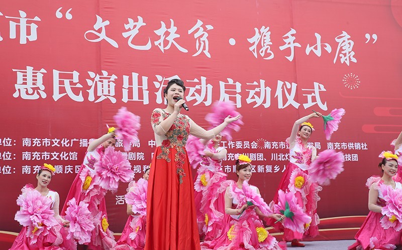 为更好的共享文化发展成果,9月30日,由四川省南充市文化广播电视和旅游局、市直机关工委、市扶贫开发局、市供销社联合主办,市文化馆、市大木偶剧院、市歌舞剧院、市川剧团、市杂技团联合承办的南充市“文艺扶贫·携手小康”惠民演出活动启动仪式在顺庆区新复乡四方寨村举行,市文广旅局党组成员、副局长兰海致辞并宣布活动启动。