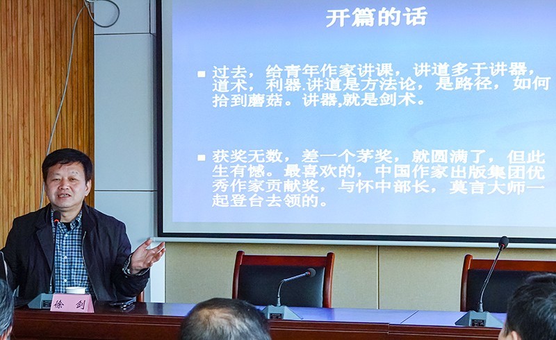 “国家叙事、军队叙事写了近30年,我觉得主题文学存在困境,必须突出重围。”讲座上,徐剑以《主题文学叙事的困境与突破》为题进行了分享。