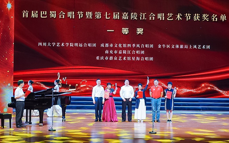 5月19日晚,为期3天的首届巴蜀合唱节暨第七届南充嘉陵江合唱艺术节在南充大剧院落下帷幕。经过激烈的比拼,最终评选出一等奖表演团队3支、二等奖表演团队6支、三等奖表演团队8支。其中由四川大学艺术学院明远合唱团、成都市文化馆四季风合唱团、金牛区文体旅局上风艺术团联合组队参赛的成都市代表队,南充市嘉陵江合唱团,重庆市群众艺术馆星海合唱团获得一等奖。