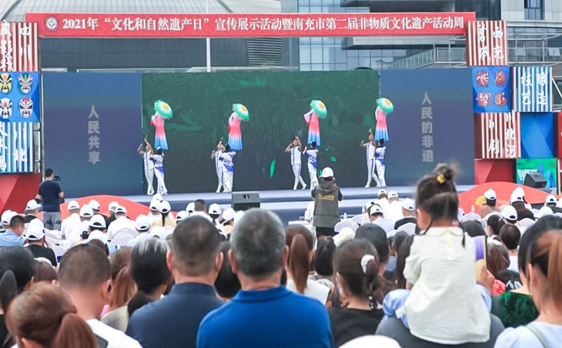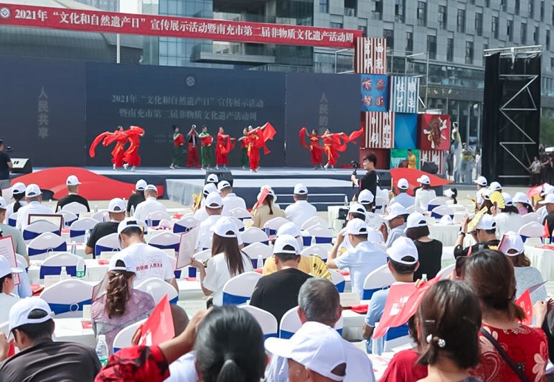 6月11日上午,由四川省南充市文化广播电视和旅游局、西充县人民政府主办,南充市文化馆、西充县文化广播电视和旅游局承办的,以“人民的非遗人民共享”为主题的2021年“文化和自然遗产日”宣传展示活动暨南充市第二届非物质文化遗产活动周,在西充县城北广场正式启动。