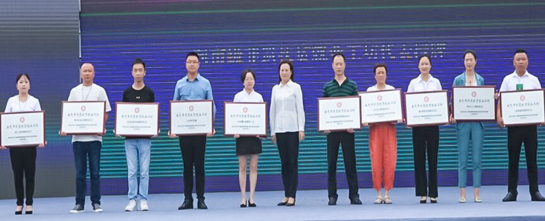 (赵秀清为南充市非遗扶贫就业工坊授牌)