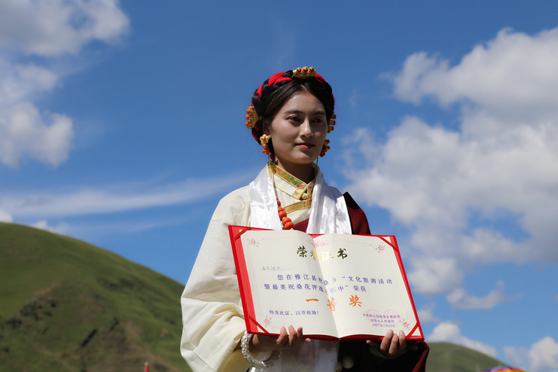 7月25日,四川雅江县祝桑乡文化旅游活动暨最美祝桑花评选活动在奔达村火热开幕。来自全县的3000多名农牧民群众和各方游客欢聚一堂,赏祝桑花海,听天籁之声,体验祝桑文化。经过激烈的角逐,白马拥次获得了最美祝桑花评选活动一等奖。