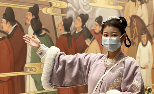 “各位游客大家好,欢迎大家来到被誉为‘天下第一门’的隋唐洛阳城应天门遗址博物馆,在这座城楼上,隋炀帝开创了万国来朝,武则天完成了登基仪式,唐玄宗接见了日本遣唐使。接下来就跟随我的讲解,来感受了解1300多年前的神都洛阳……”22日上午,身穿一身汉服的蔡艳晖在应天门遗址博物馆接上了这一天的第一批游客,带领他们开始了在神都洛阳的时光“穿越之旅”。