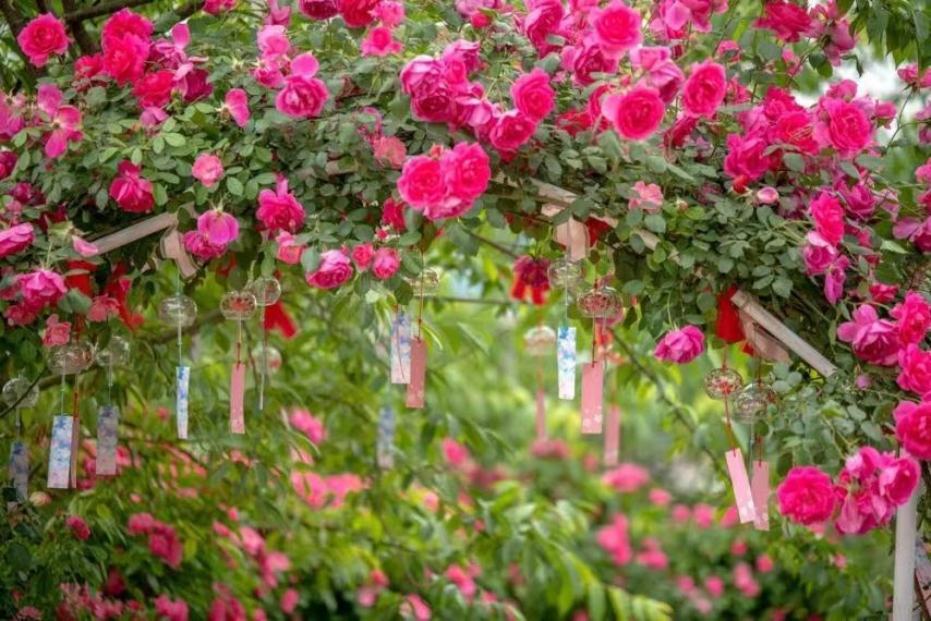 活泼的鸟群跃入林间,嬉笑的玫瑰攀上枝头,如入画境