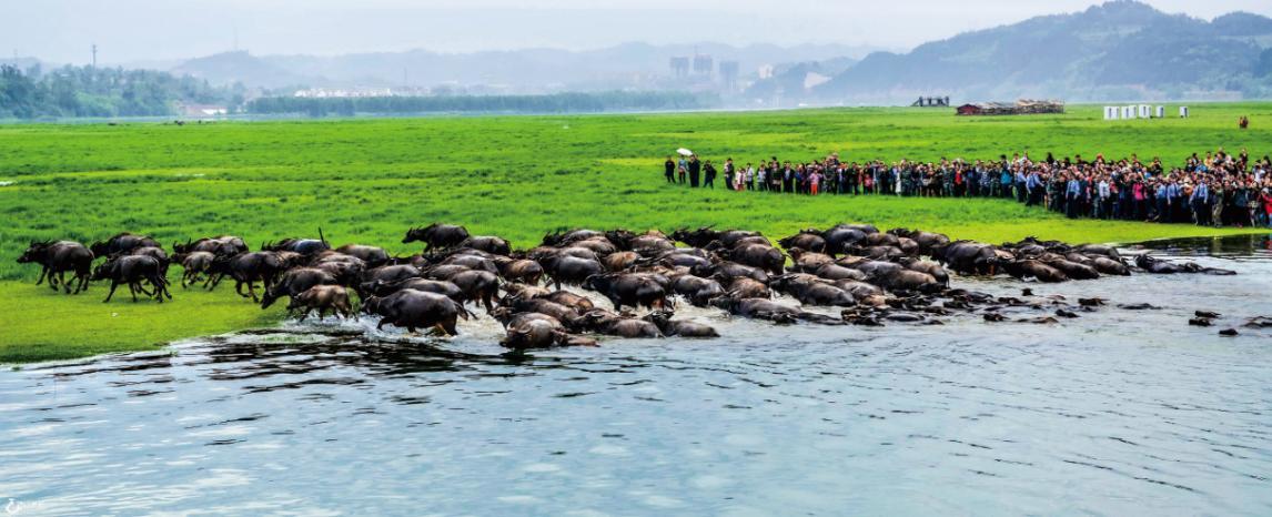 春天后的每个清晨,上百头牛便成群结队,争相渡江