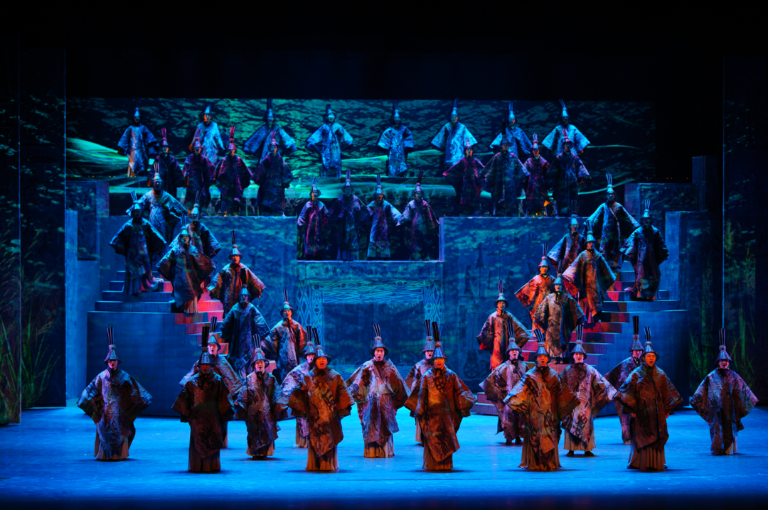 嘉陵滔滔兮水调歌头,万卷藏书兮风云满楼。日月如梭兮竹筒如稠,一部《三国志》兮史志不朽,一曲明亮的音乐声伴随着合唱声响起,青束如墨、冠巾飘飞的陈寿缓步而出,歌剧《陈寿著三国》正式上演。