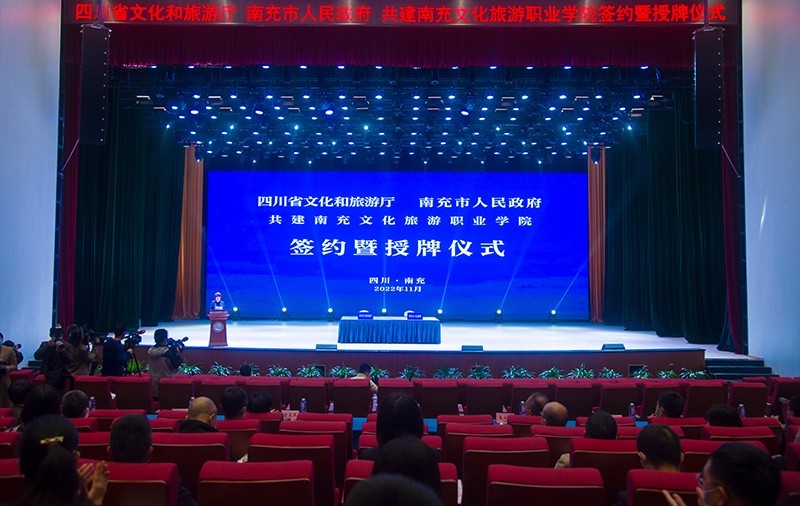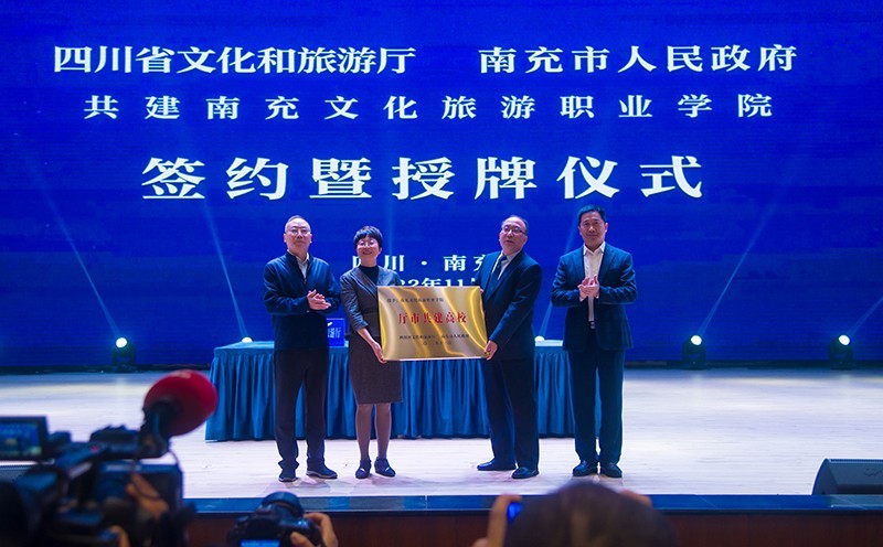 11月9日上午,在南充文化旅游职业学院演播厅,四川省文化和旅游厅与南充市人民政府共建南充文化旅游职业学院签约暨授牌仪式隆重举行。