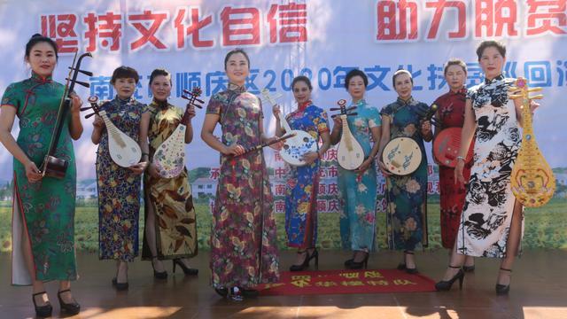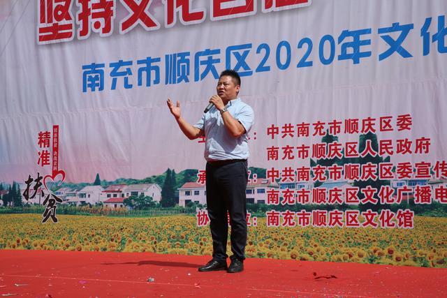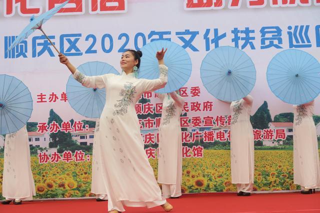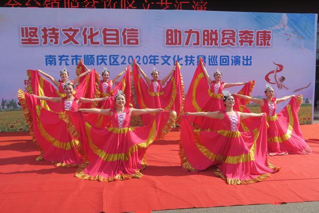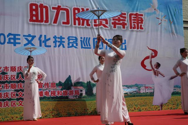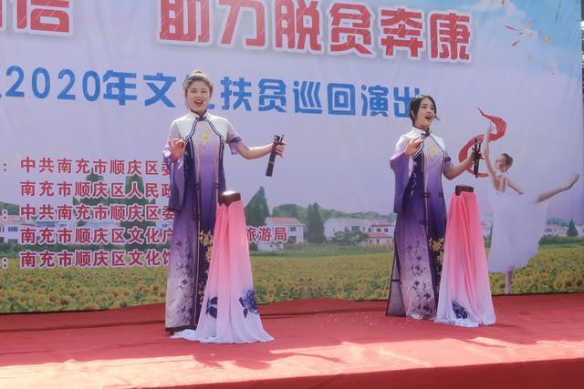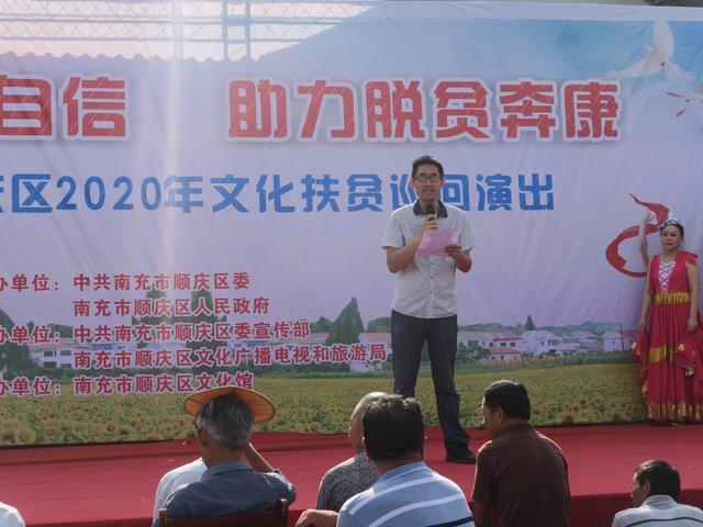 但这酷暑挡不住南充市顺庆区委、区政府主办,区委宣传部、区文广旅局承办,区文化馆协办的顺庆区2020年文化扶贫巡回演出活动的热情。“坚持文化自信 助力脱贫奔康”,顺庆区文化部门坚持把党的扶贫政策落实到位,扶贫攻坚决不走形式,决不摆过场。携文艺演出队到近十余镇上顶烈日,冒酷暑前往几十公里的各个乡镇开展送文化下乡的演出。
