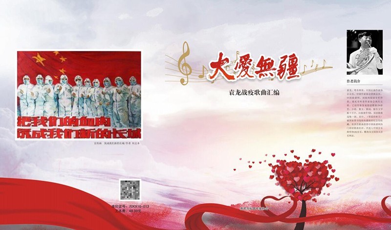 据了解,《大爱无疆》袁龙战役歌曲特刊由南充应急科技研究院主管,《南充应急管理》出版编辑,全书在市科协和市退役军人事务局的支持下,南充市科普作家协会执行主席、退役军人袁龙历经半年时间,呕心沥血,创作了《爱从何来》《初春的格桑花》《春天的微笑》《大国风范》《回家的路》《抗疫疆场如战场》《献给白衣战士》等37篇战役歌曲。这也是自全国抗疫以来,市科协系统齐心协力,为爱逆行,众志成城、合力抗疫后,市科普作家协会特地为战役献上的又一倾力之作。截止目前,袁龙创作和发表的原创歌曲达到了250多首,小说、散文、新闻、报告文学数十万字,出版著作3部,原创歌曲选集一部。