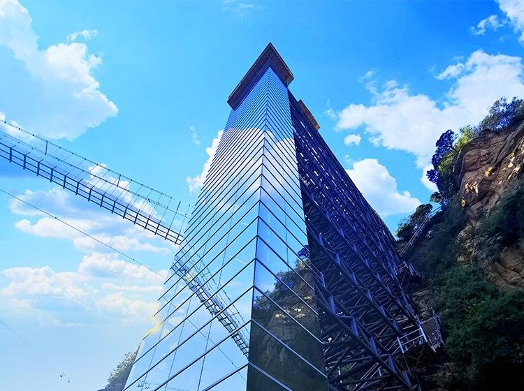 清凉谷景区全透明观光直梯,到达山顶玻璃天桥景点仅需20秒。在透明的电梯里,饱览秀丽山川,满眼是层层叠叠的绿,蓬勃着无限生机。