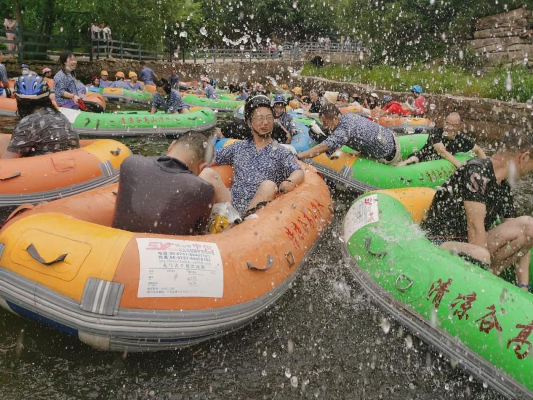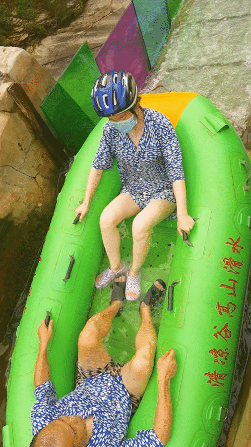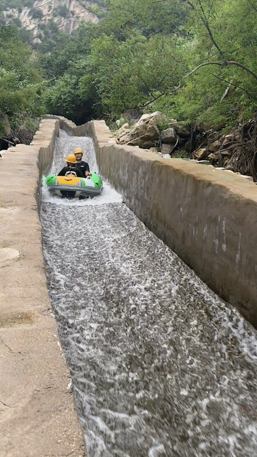 激流勇进项目俗称清凉谷“小漂流”,它依山而建,全长约2000米,和情侣一起坐上橡皮船,从高处滑下,在山林间穿梭迂回,激起千重水花万重浪,整个过程刺激有趣。
