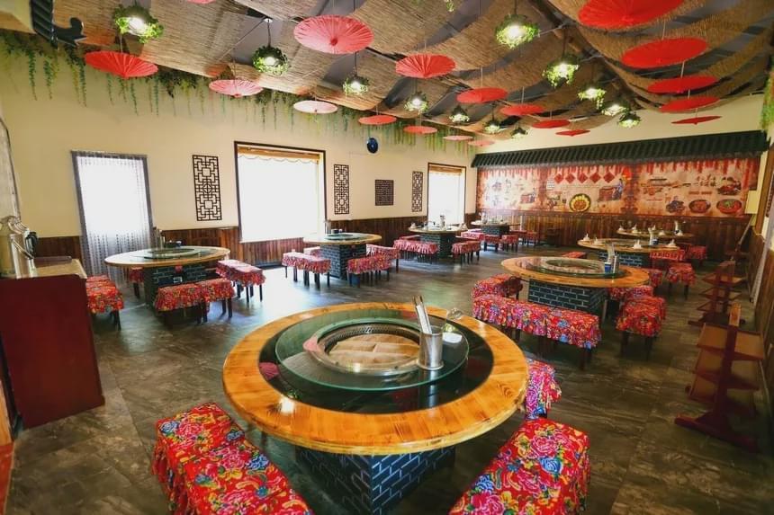 清凉谷度假村的餐厅全新升级,给人一种精致古典的视觉舒适感,在这里可以吃到健康无污染、纯天然的农家菜。