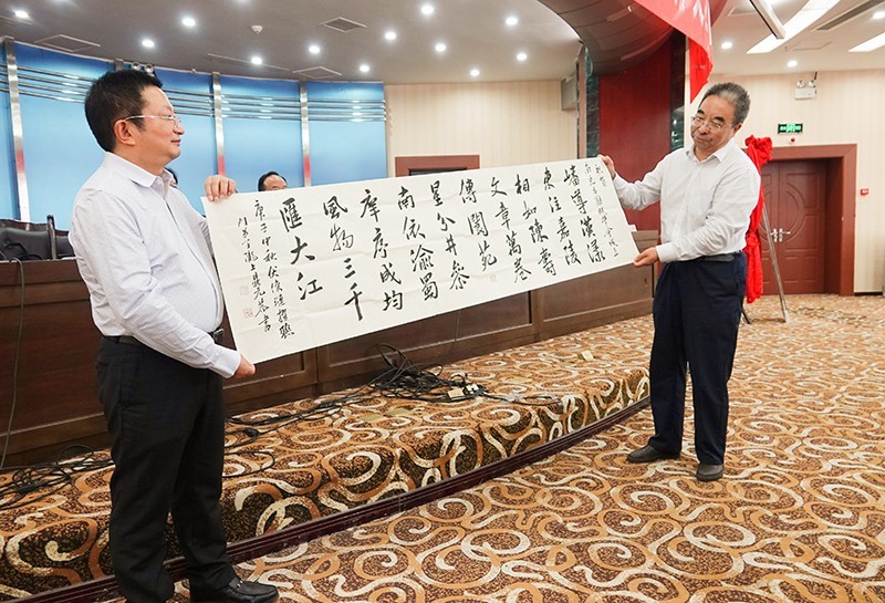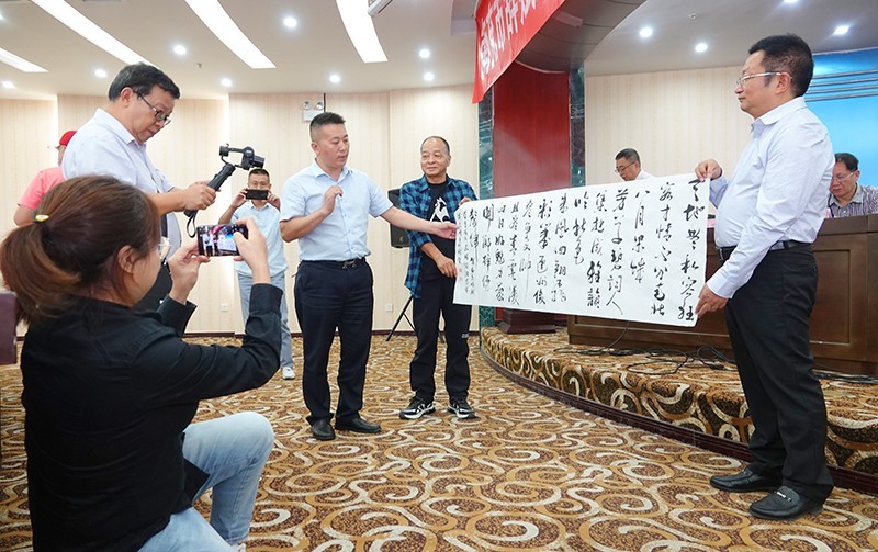 嘉陵区诗词学会会长任静海、嘉陵区文化馆馆长晏春分别向南充市辞赋学会赠送了书法作品。