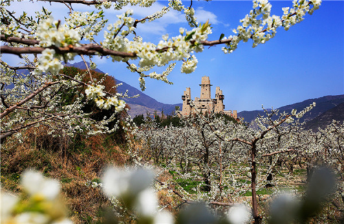 阳春三月,百花盛开,位于四川阿坝州的茂县,天气回暖,明媚的春光里粉嫩的樱花、桃花,洁白的李花、梨花竞相绽放,岷江河谷两岸、大街小巷、羌乡古寨姹紫嫣红,春意盎然,当地的居民们喜笑颜开,聚会或散步于花下。