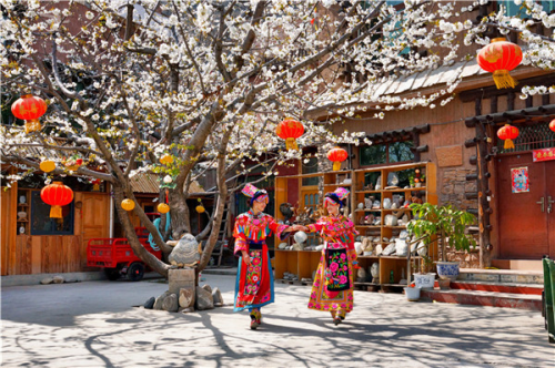 汉服爱好者小张,为了把照片拍得更加的仙气飘飘,刻意带上自己好看的汉服来到了茂县中国古羌城,她激动的对同伴说:“你们看看,有没有仙女下凡的感觉,这种大片大片的李子花海,好适合拍汉服哦,明年我还要来!还有,你看他们穿的羌服,颜色好靓丽,拍出来也好好看哦,我也想去借来拍……”