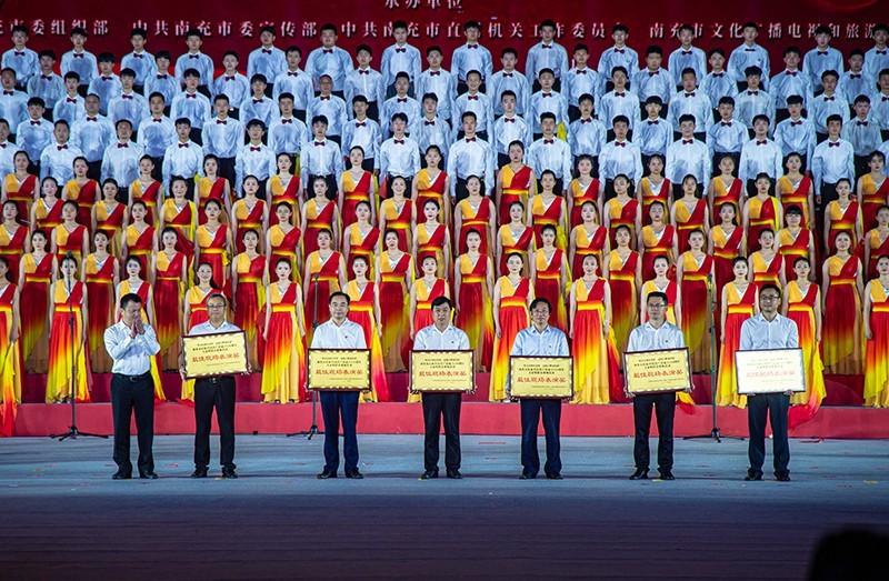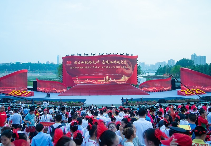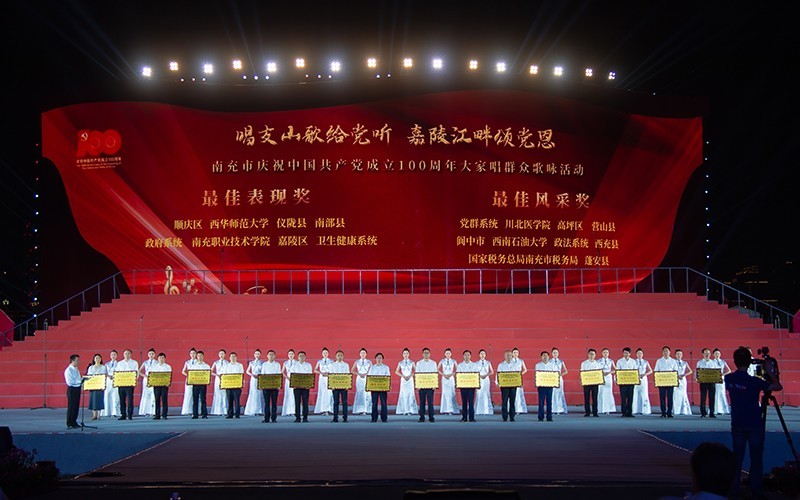 5月30日晚,“印象嘉陵江”湿地公园流光溢彩、歌声嘹亮。由四川省南充市委、市政府主办,市委组织部、市委宣传部、市直机关工委、市文化广播电视和旅游局联合承办的“唱支山歌给党听· 嘉陵江畔颂党恩”南充市庆祝中国共产党成立100周年大家唱群众歌咏活动在此激情上演。来自全市5支市机关单位、4所高校、九县(市、区)的18支合唱队以及两支群众队伍用嘹亮的歌声抒发爱党爱国情怀。