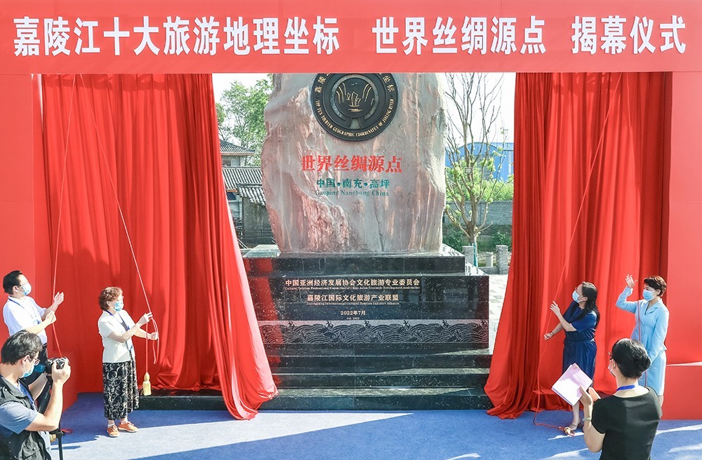 7月29日上午,嘉陵江十大旅游地理坐标“丝绸源点景区”揭幕仪式在四川省南充市高坪区六合丝绸博览园六合码头举行。